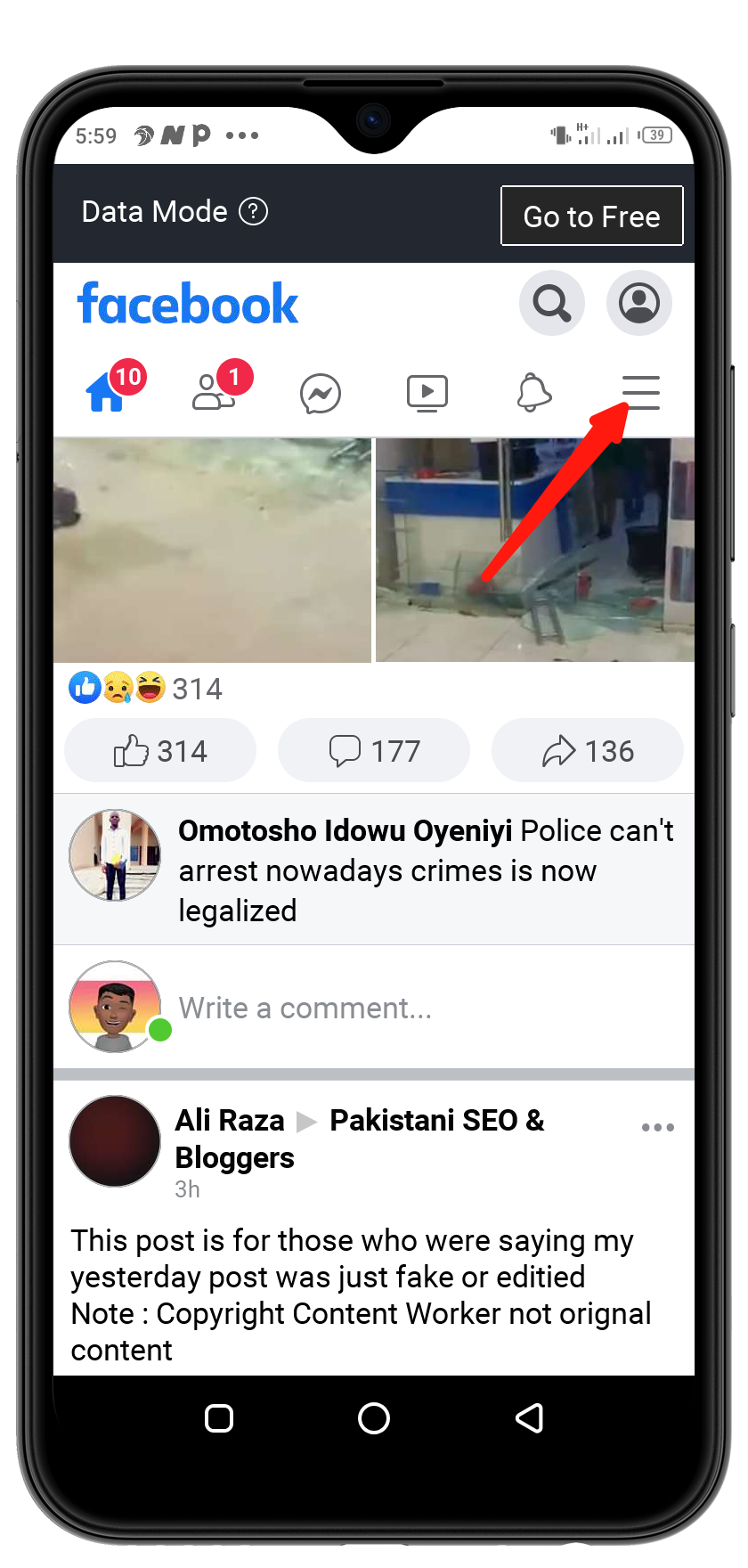 - Open your Facebook app, then click on three lines, as shown in the screenshots above.